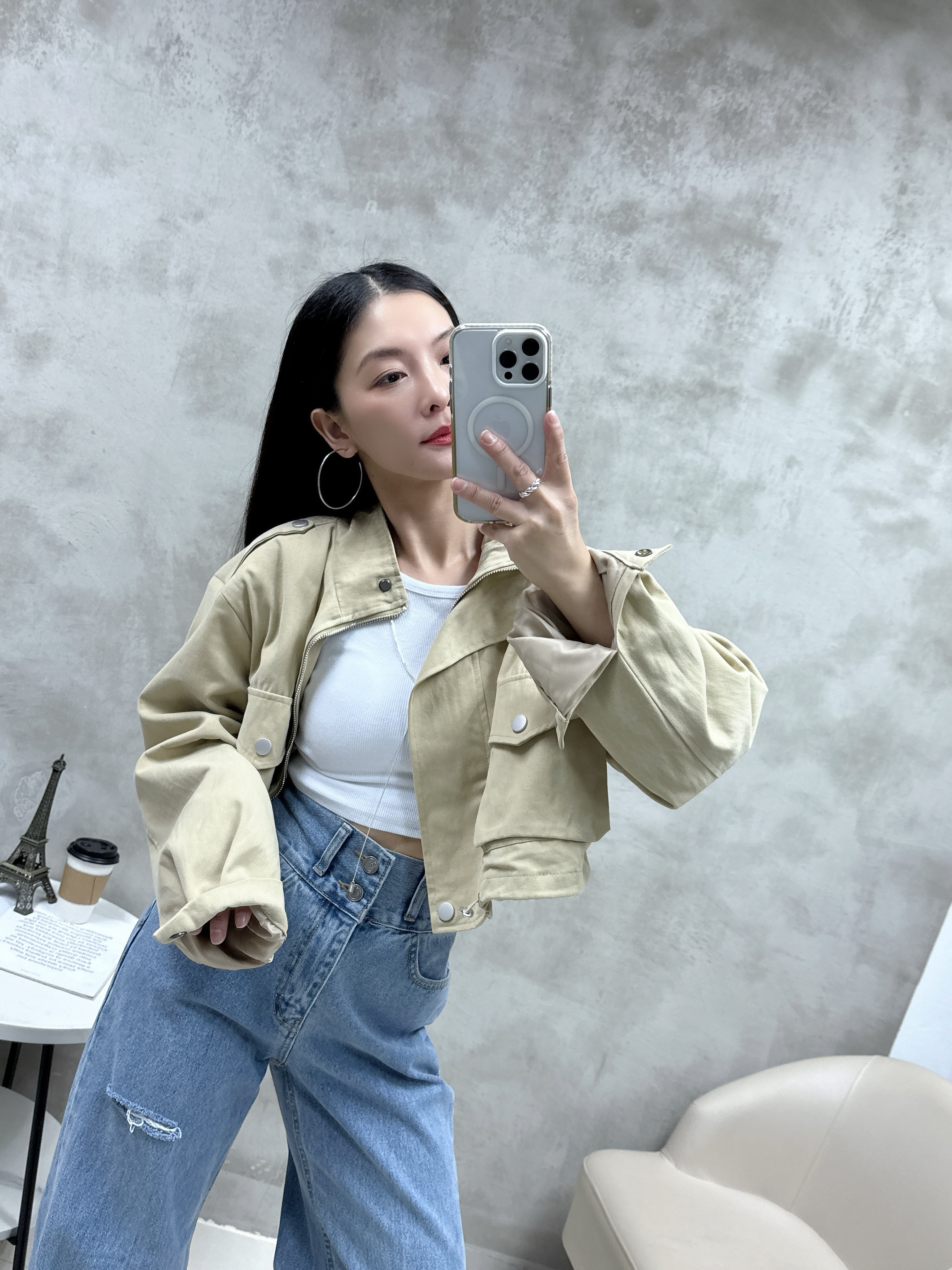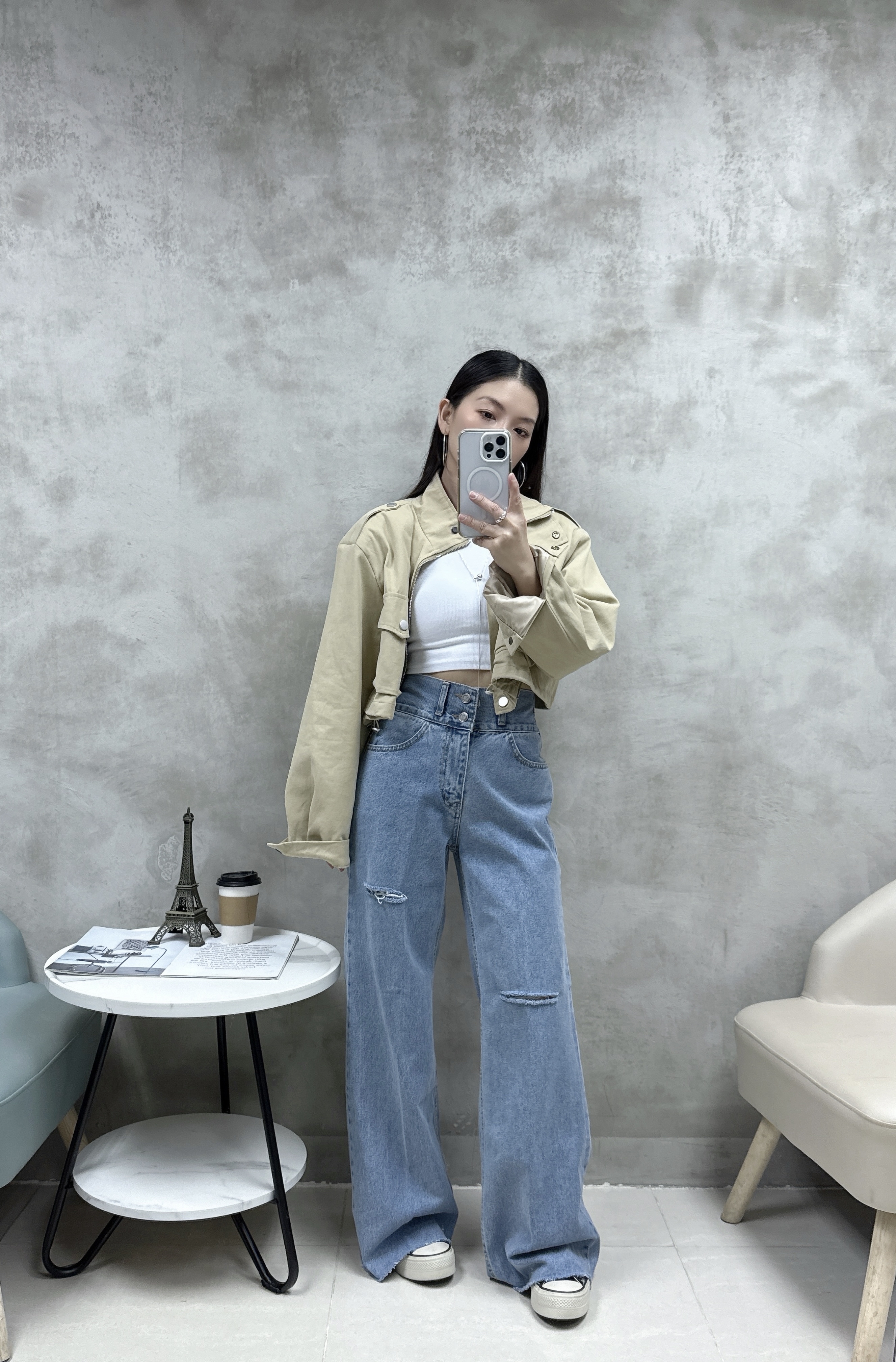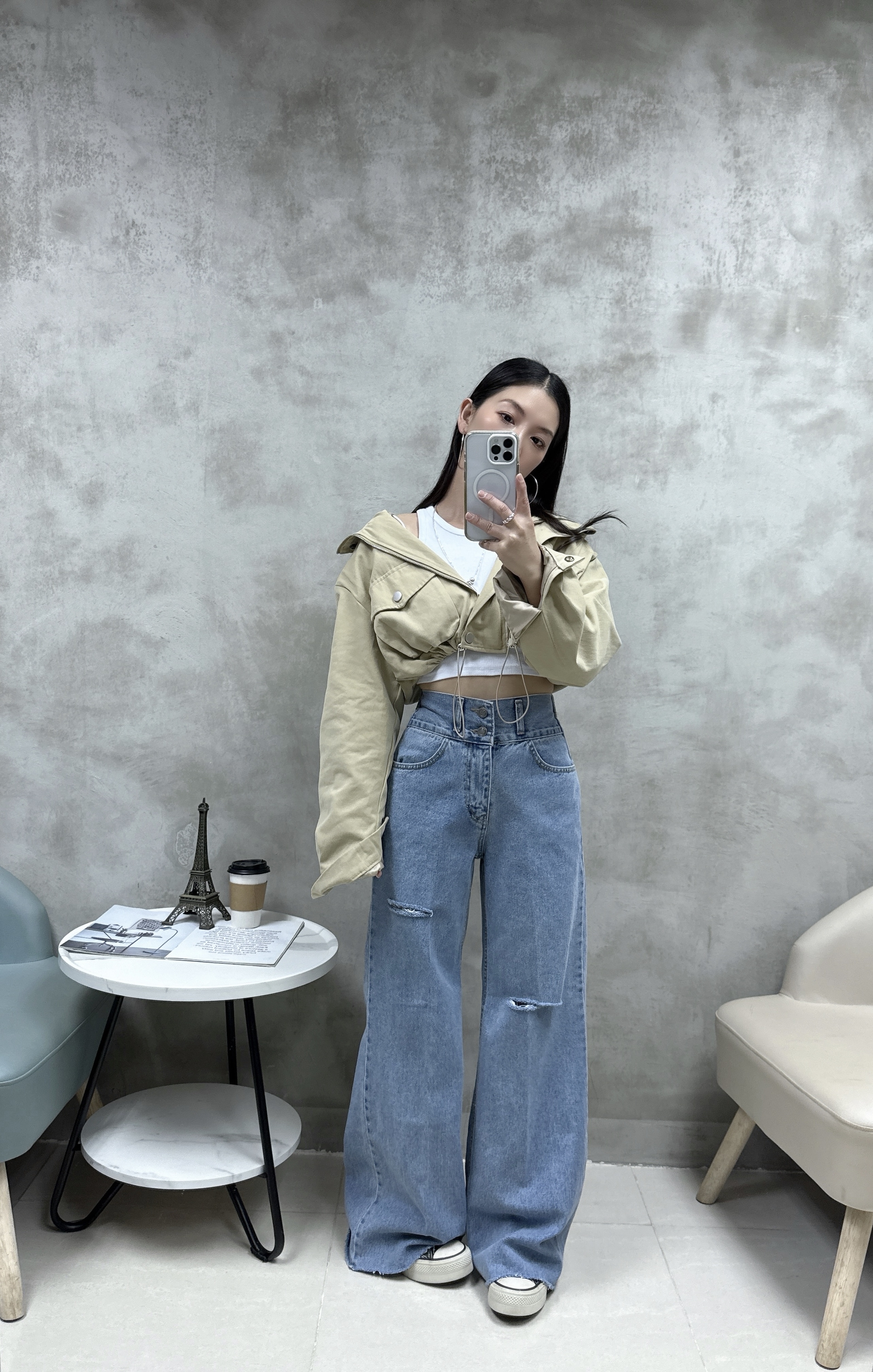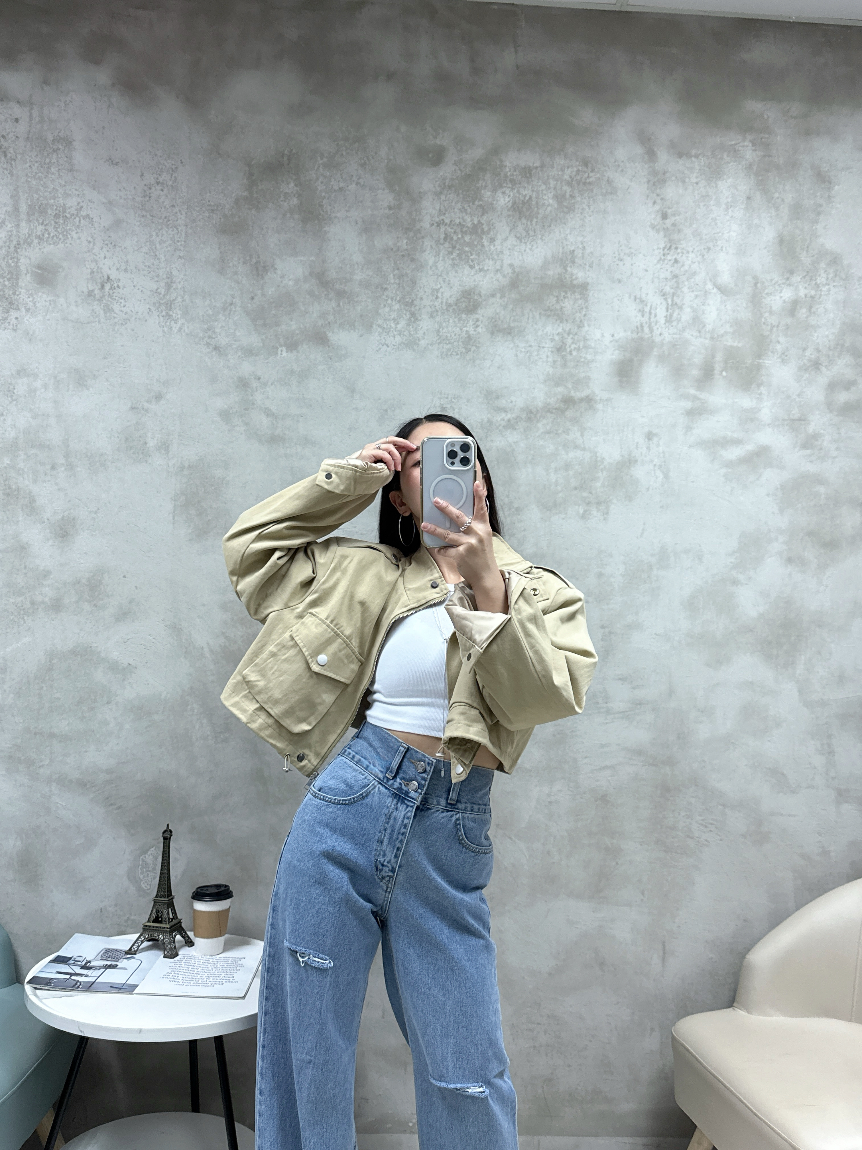 F25 雙鈕洗水介爛牛仔褲