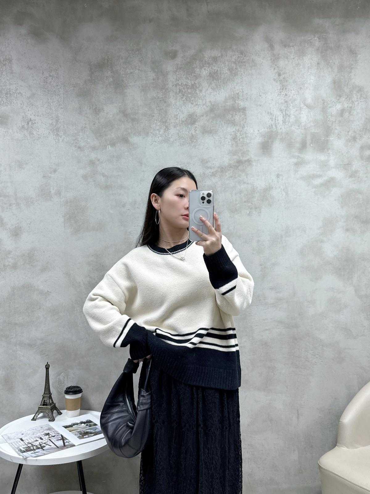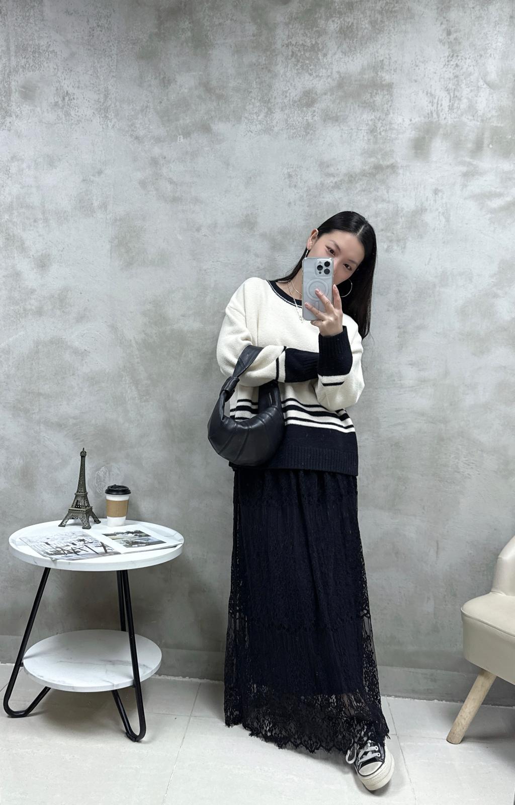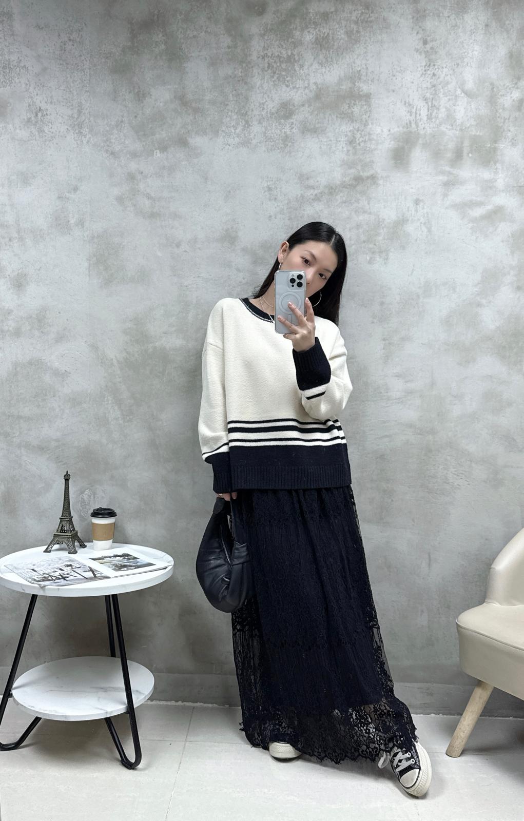 R03 黑白拼色針織Top